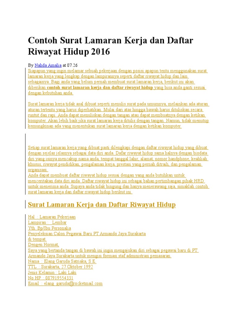 Contoh Surat Lamaran Kerja Dan Daftar Riwayat Hidup 2016 33333
