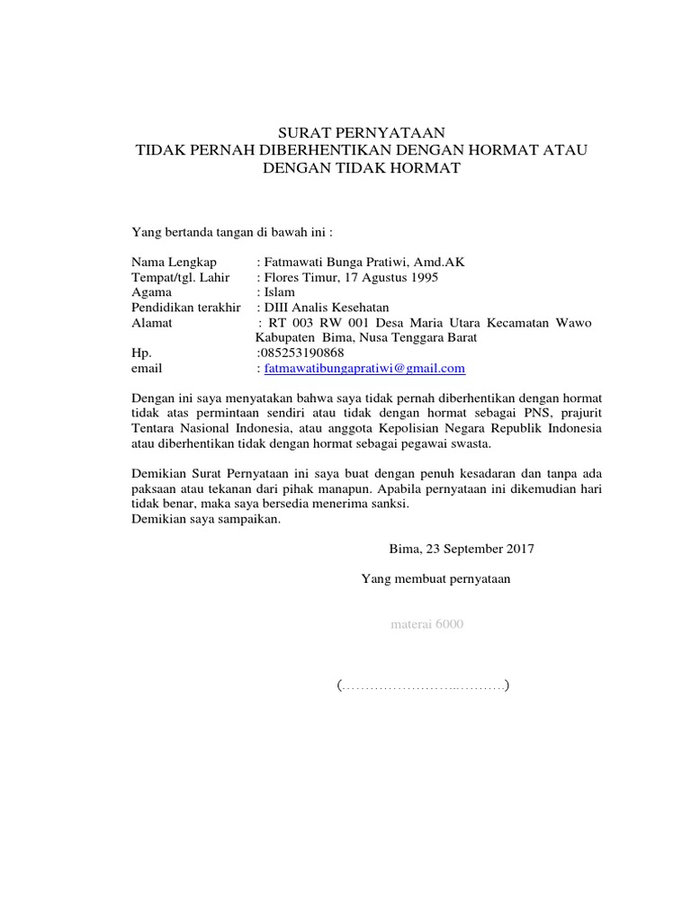 Surat Pernyataan Tidak Pernah Diberhentikan
