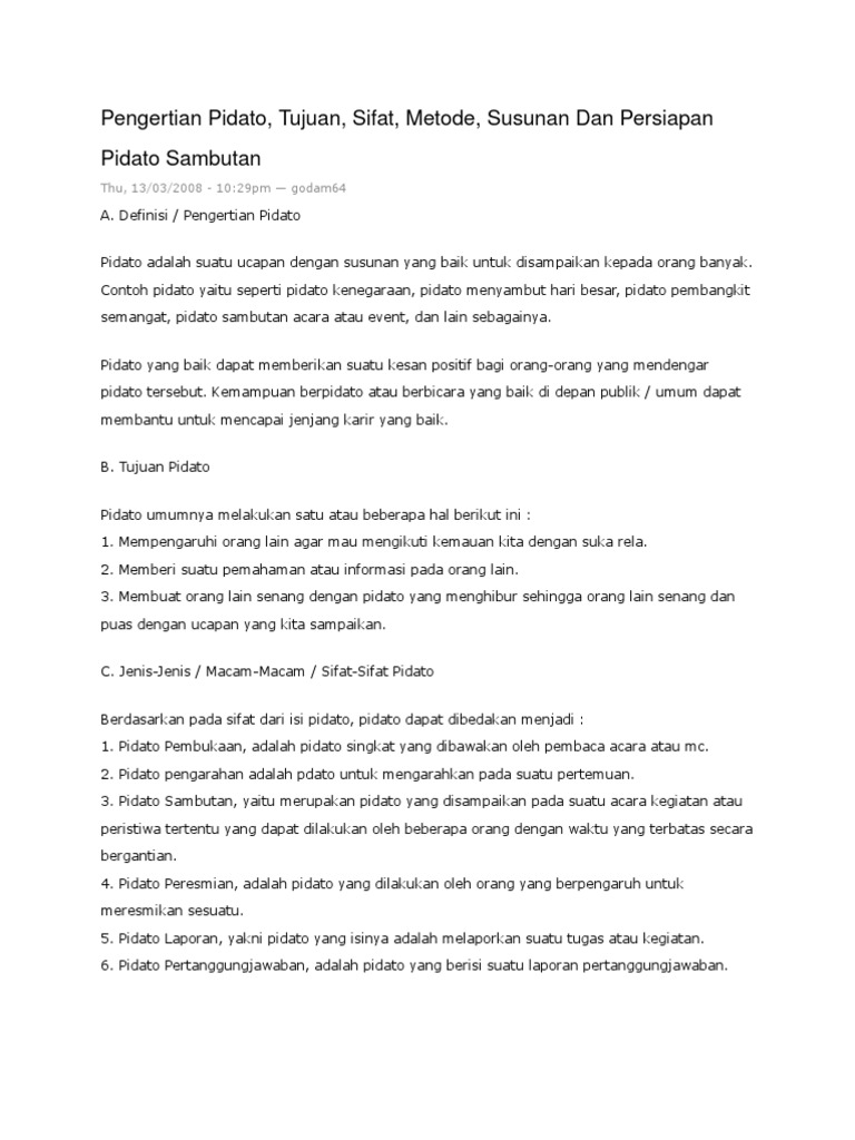 Pengertian ciri metode jenis fungsi dan tujuan terlengkap pernahkah kamu menjadi pembicara di khalayak umum. Semoga bermanfaat bagi anda. Jenis jenis macam macam sifat sifat pidato berdasarkan pada sifat dari isi pidato pidato dapat dibedakan menjadi.