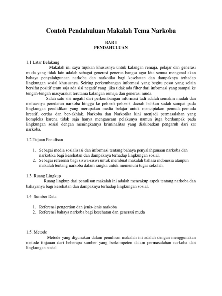 Contoh Pendahuluan Makalah Tema Narkoba Docx