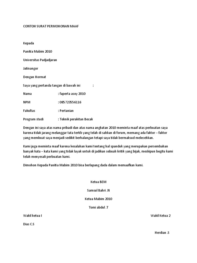 Surat Permohonan Maaf Rasmi Brad Erva Doce Info