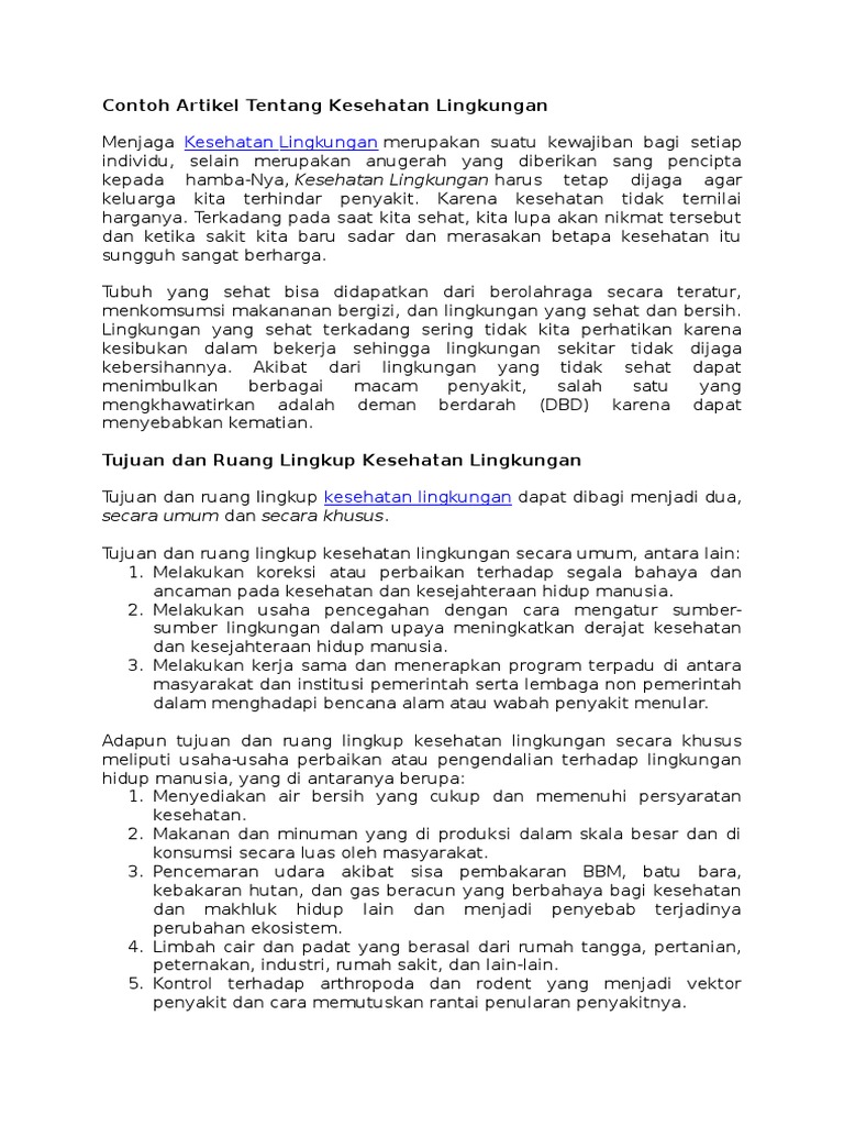 Contoh artikel tentang kesehatan. Buruknya rokok bagi kesehatan kita kesehatan merupakan kesejahteraan dari badan jiwa dan sosial yang memungkinkan seseorang untuk hidup produktif secara sosial dan ekonomi. Umumnya artikel yang membahas tentang kesehatan ditulis oleh ahlinya yaitu oleh orang orang yang tahu tentang kesehatan. Contoh artikel bahasa inggris tentang kesehatan kulit dan artinya kesehatan kulit wajib kita jaga sebab kulit merupakan bagian terluar dari tubuh kita.
