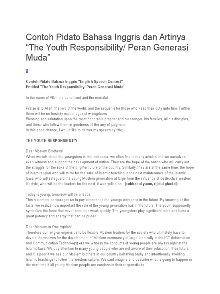 Contoh pidato dalam bahasa inggris. Demikian contoh pidato bahasa inggris tentang islam dan terorisme. 15 contoh pembukaan pidato bahasa inggris dan artinya source. Semoga membantu dan dapat menjadi referensi anda dalam belajar bahasa inggris maupun sebagai pengetahuan pribadi.