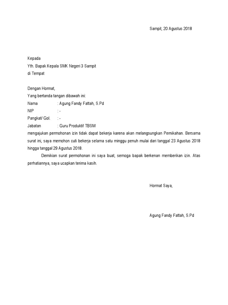 Contoh Surat Izin Cuti Nikah Melahirkan Dan Kuliah Dunia Cyber