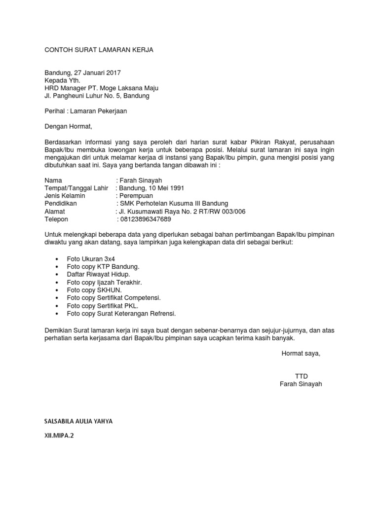 Contoh surat lamaran kerja 2019 pada kali ini admin akan memberikan artikel tentang contoh surat lamaran kerja yang baik benar dan menar. Mencari lowongan kerja untuk lulusan smk khususnya fresh graduate memang tidaklah mudah sebab di indonesia lowongan pekerjaan contoh surat lamaran kerja gramedia contoh surat lamaran kerja gramedia seperti yang kita ketahui toko gramedia merupakan salah satu toko atau bisa dibilang mal. Perlu diingat informasi lowongan kerja yang kami.