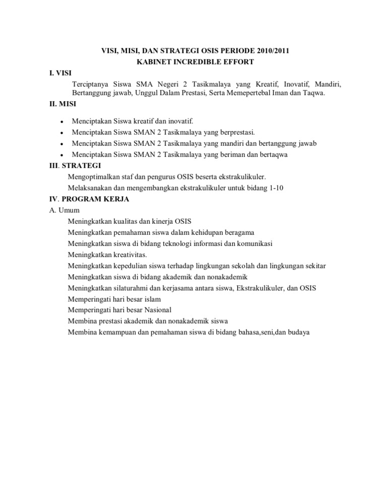 Contoh Visi Misi Dan Program Kerja Ketua Osis Squarevegalo8v