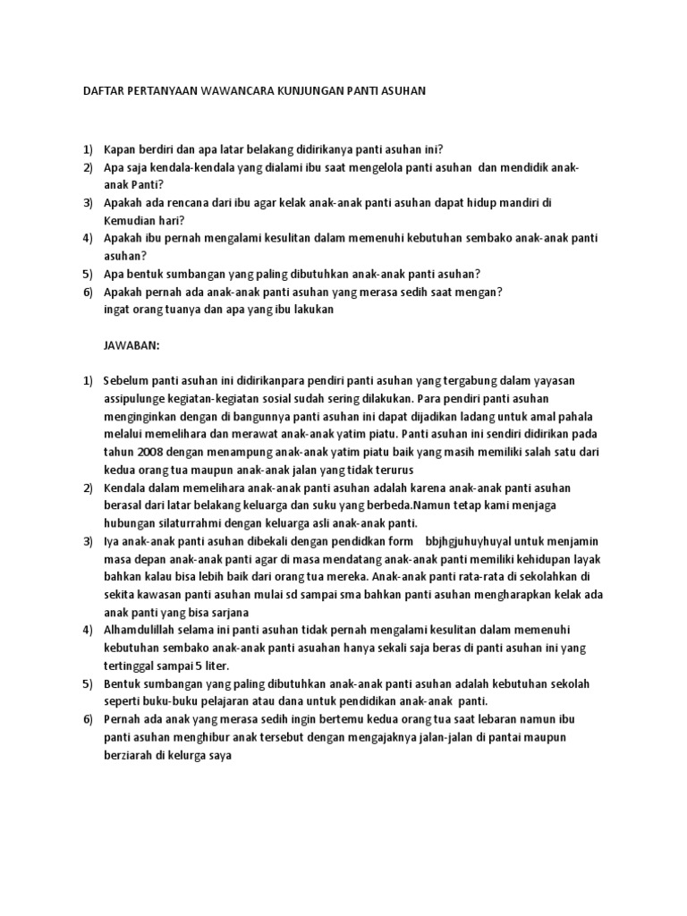 Daftar Pertanyaan Wawancara Kunjungan Panti Asuhan