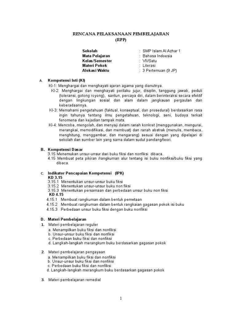 Rpp Bahasa Indonesia Kelas Vii Bab Viii Asisten Nur Academia Edu