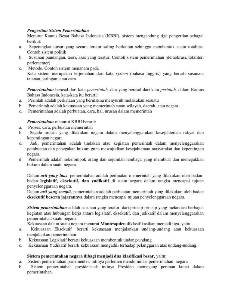 Sistem Pemerintahan Pengertian Macam Macam Sistem Indonesia