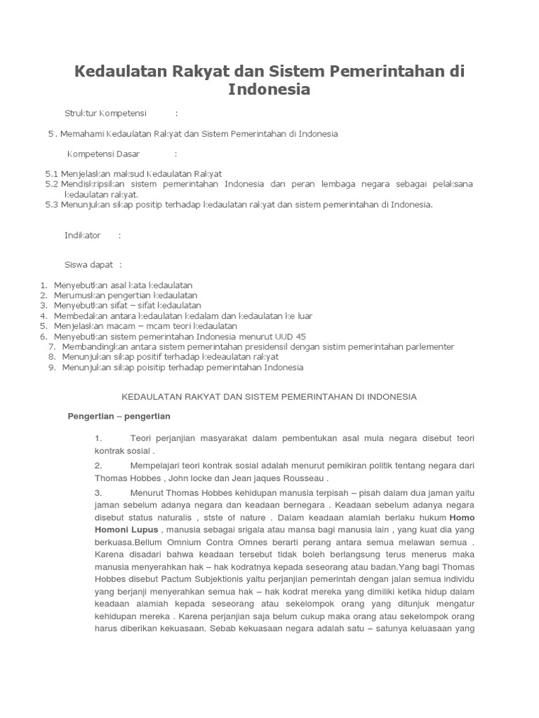Kedaulatan Rakyat Dan Sistem Pemerintahan Di Indonesia