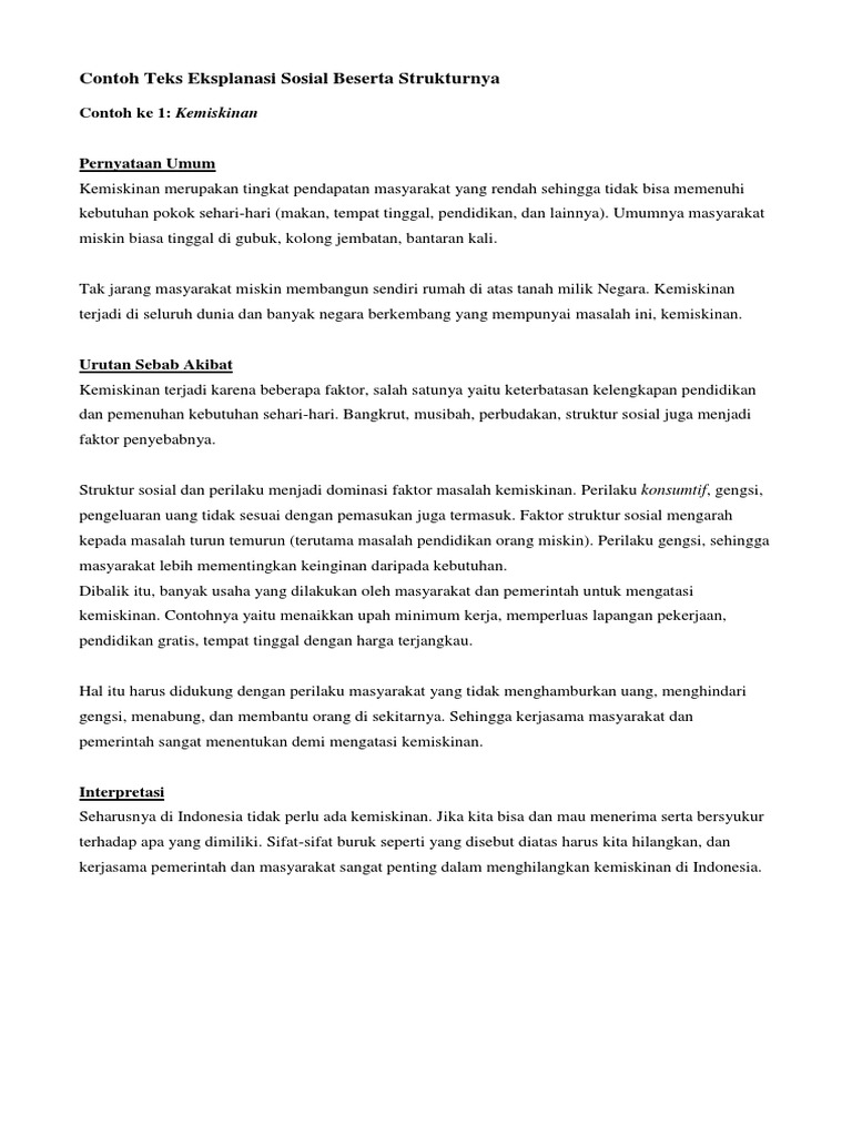 Selain itu terdapat juga beberapa contoh teks eksplanasi sosial seperti pengangguran sampah dll. Contoh teks eksplanasi budaya beserta strukturnya 6 november 2018 3 min read kita ketahui bersama bahwa teks eksplanasi merupakan teks yang berisikan mengenai proses mengapa dan bagaimana suatu peristiwa terjadi.