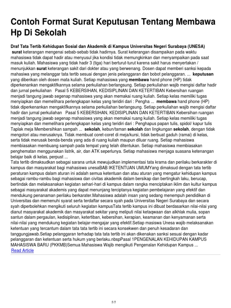 Contoh Format Surat Keputusan Tentang Membawa Hp Di Sekolah