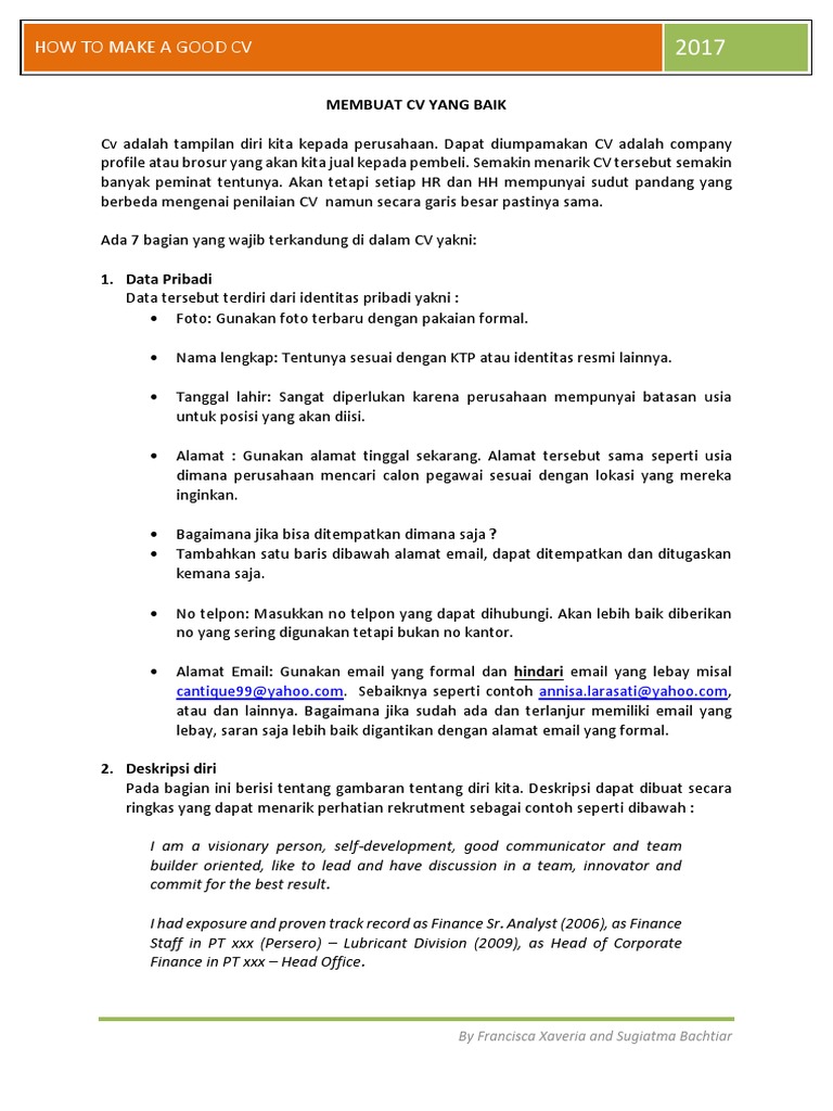 Contoh Cv Yang Baik Welcome To Agungmedia