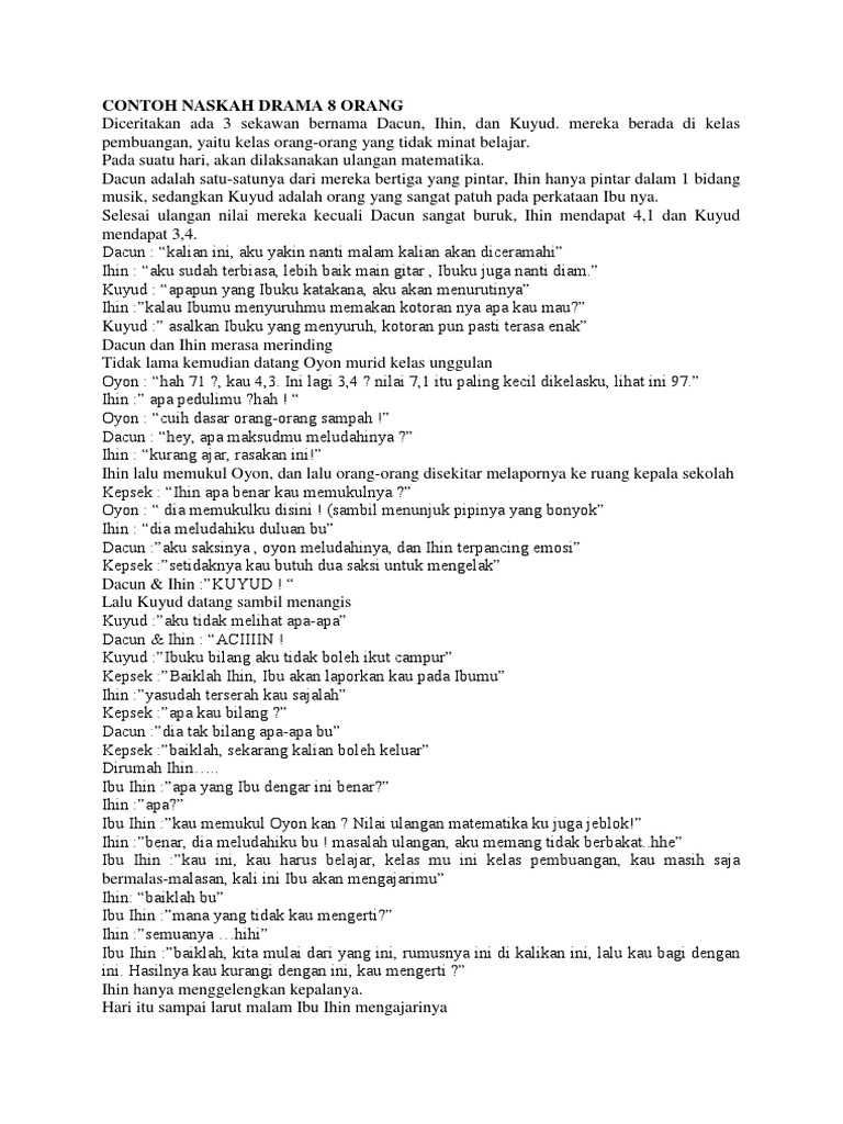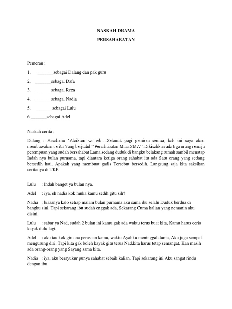 Berita andalan adalah situs berita pilihan tentang berita pendidikan guru kesehatan seksualitas wanita kecantikan. Contoh naskah drama 6 orang tentang pendidikan naskah drama merupakan sebuah bentuk sajian tulisan yang berfungsi sebagai kendali utama jalannya cerita dalam pementasan lakon drama. Home bahasa indonesia drama pendidikan contoh naskah drama 6 orang pemain singkat terbaru.