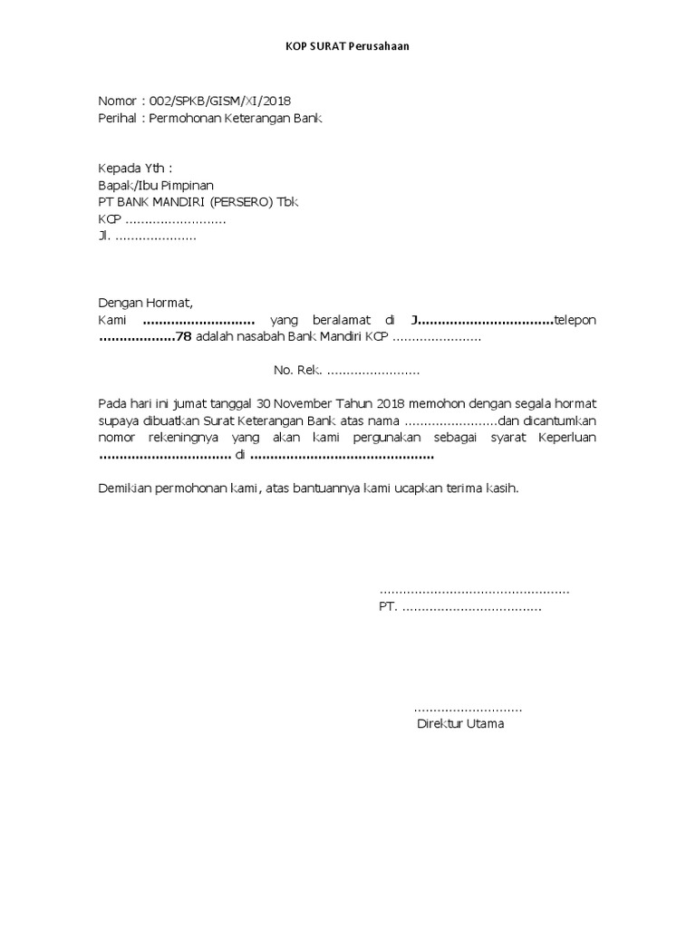 Maka kali ini saya akan mencoba berbagi contoh surat permohonan keterangan bank. Contoh surat permohonan keterangan bank jika perusahaan anda telah memiliki rekening giro dan membutuhkan surat keterangan untuk berbagai keperluan seperti dalam rangka mengikuti tender. Contoh surat pernyataan rekening bank admin june 16 2016 business tinggalkan komentar 53351 dilihat surat pernyataan rekening bank atau lebih detailnya lagi lebih dikenal dengan surat pernyataan kepemilikan nomor rekening ini biasanya dibutuhkan sebuah perusahaan sebagai pelengkap dokumen administrasi saat ingin melakukan penagihan sebuah.