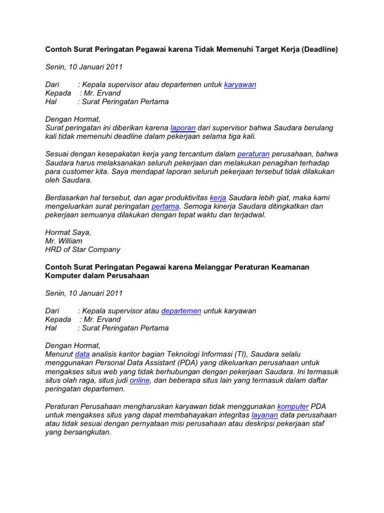 Contoh Surat An Pegawai Karena Tidak Memenuhi Target Kerja