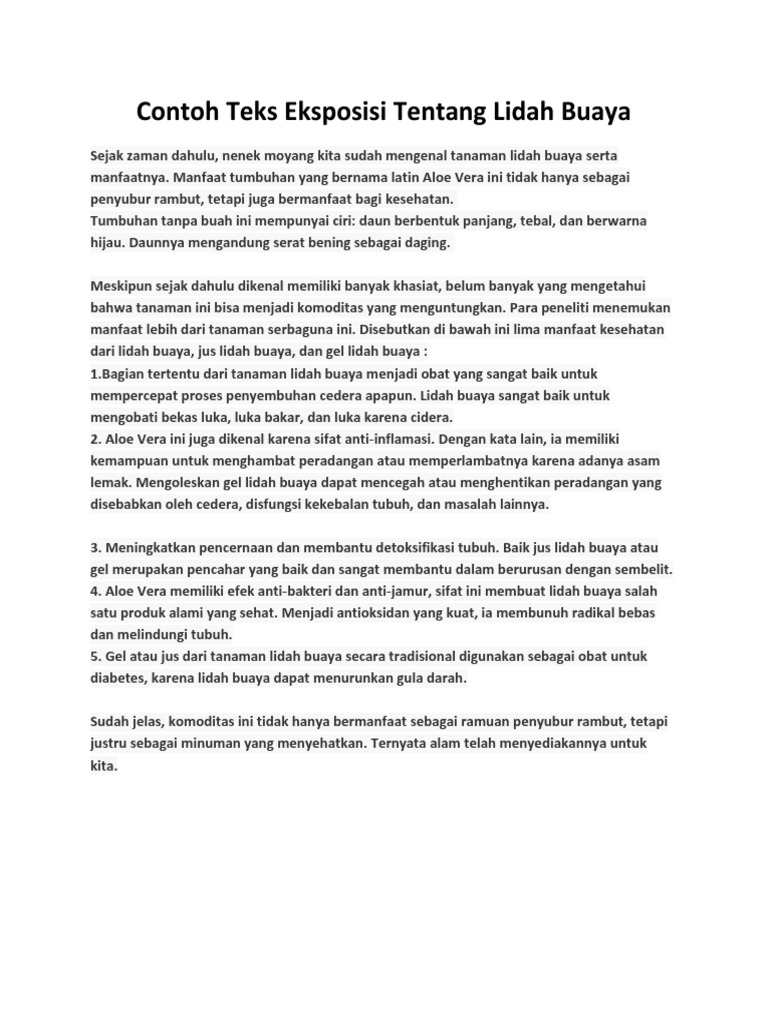 Contoh Teks Eksposisi Tentang Lidah Buaya