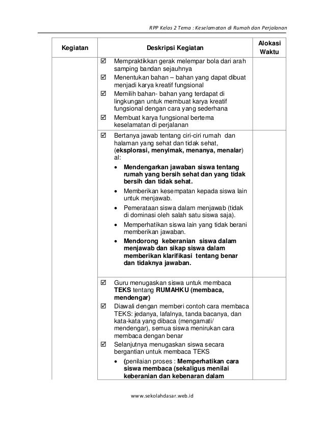 8 Rpp Sd Kelas 2 Semester 2 Keselamatan Di Rumah Dan Perjalanan B