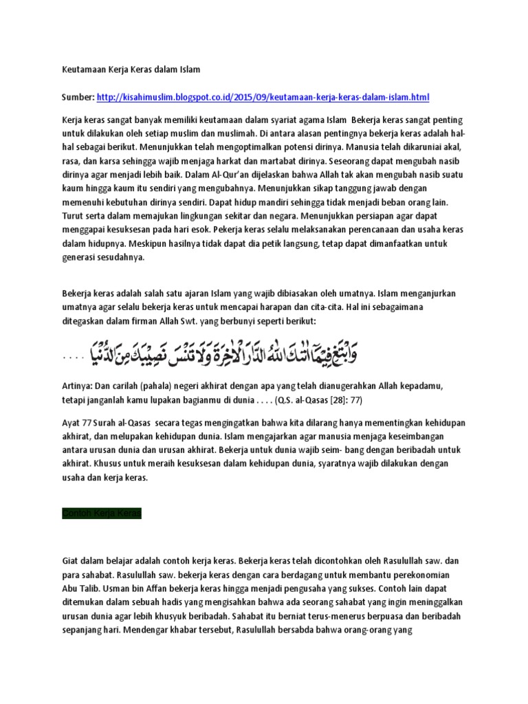 Keutamaan Kerja Keras Dalam Islam Docx