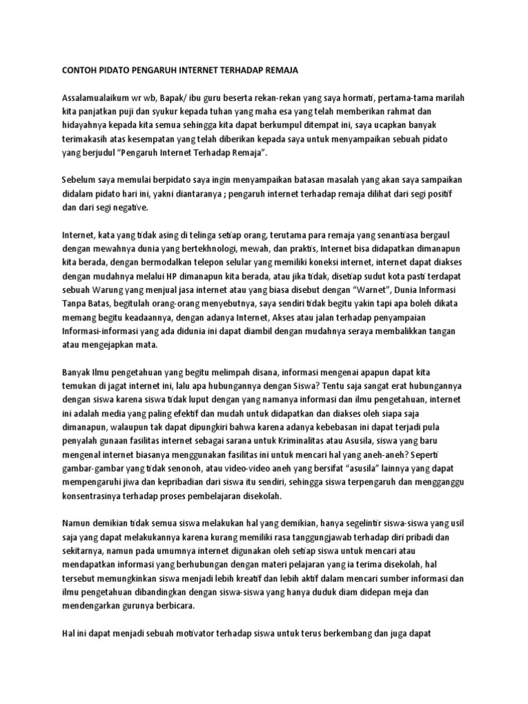 Contoh Pidato Pengaruh Internet Terhadap Remaja