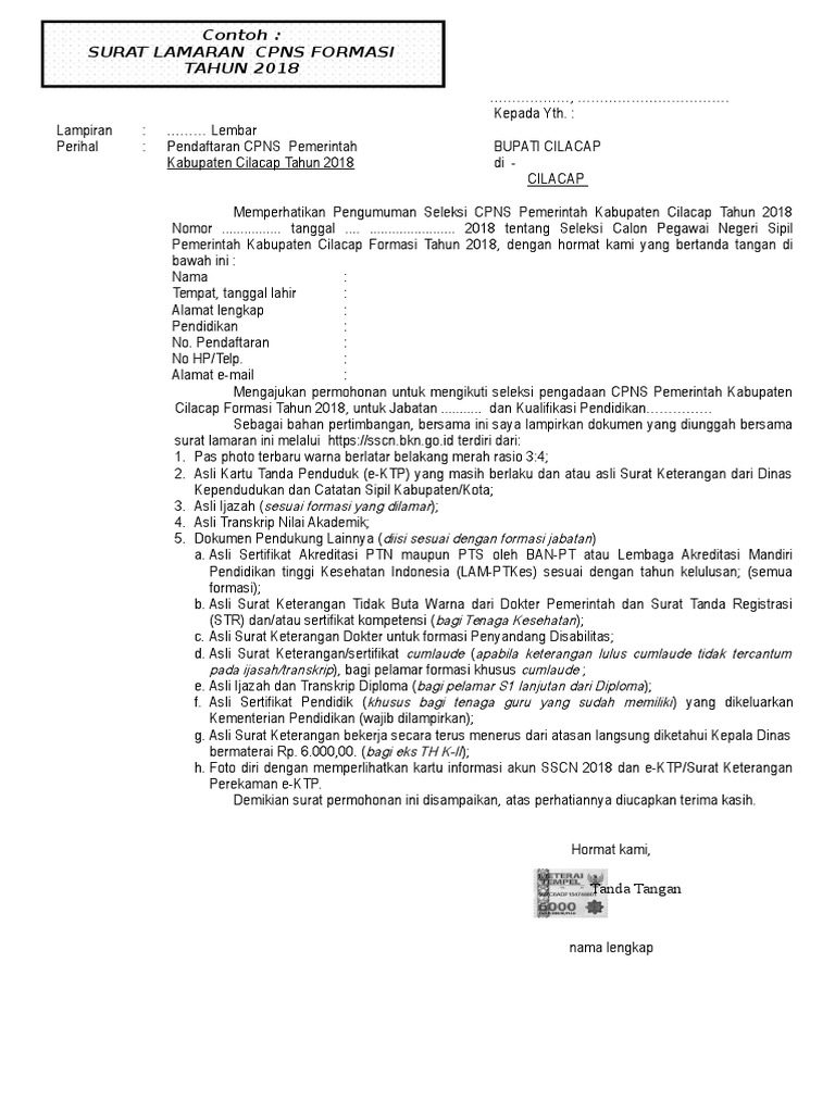 Contoh Contoh Surat Lamaran Pendaftaran Cpns 2018 Perhatikan