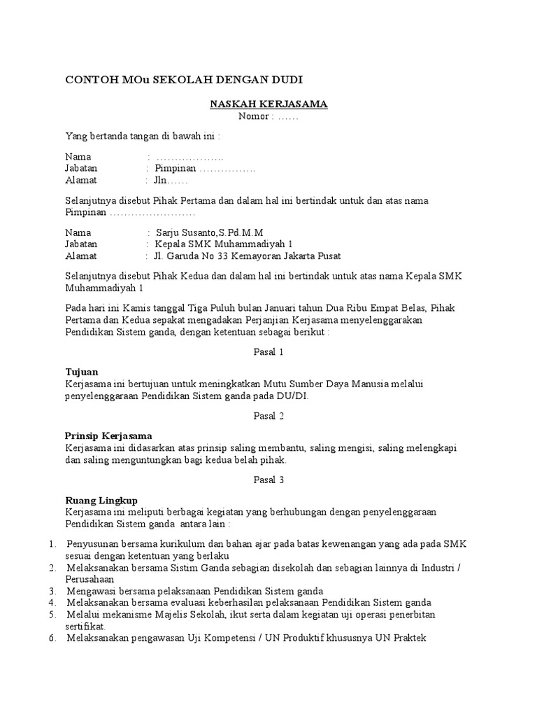 Contoh Mou Kerjasama Sekolah Dengan Perusahaan