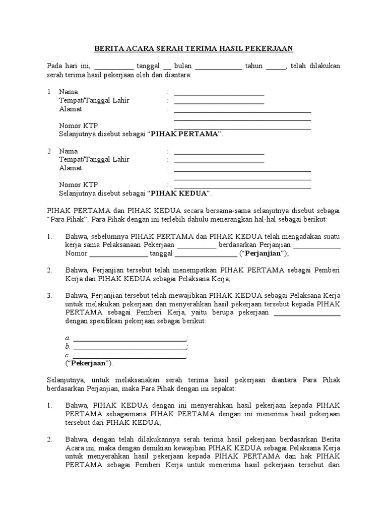 Search Berita Acara Serah Terima Pekerjaan Idslide Net