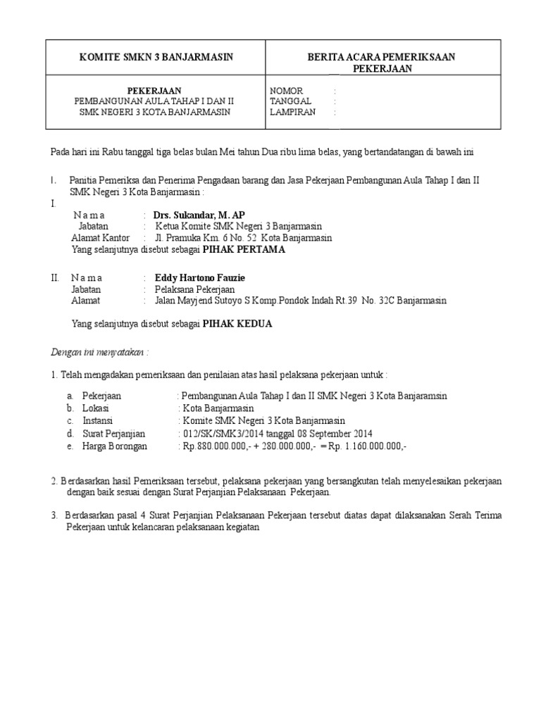 Berita Acara Pemeriksaan Dan Serah Terima Pekerjaan Docfoc Com