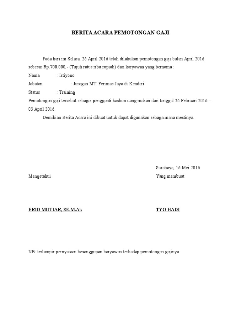 Contoh Surat Berita Acara Yang Baik Dan Benar