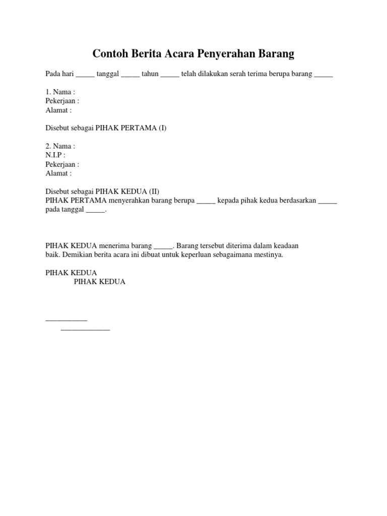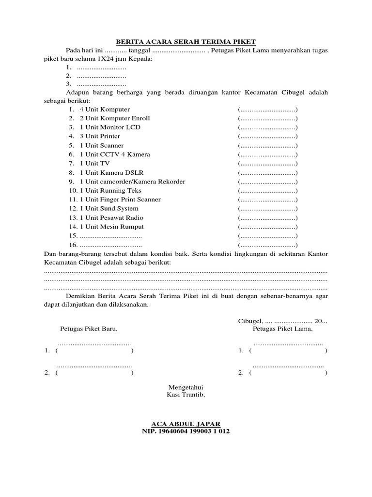 Contoh Berita Acara Serah Terima Piket
