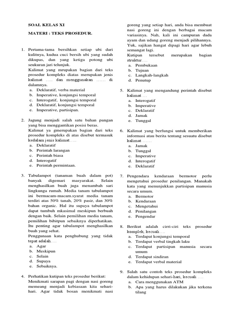 Untuk mengembangkan secara kreatif sebuah puisi. 20 soal tentang teks prosedur kompleks. Soal teks prosedur kompleks kelas xi soal teks prosedur soal teks prosedur kompleks soal prosedur kompleks soal prosedur komplek.