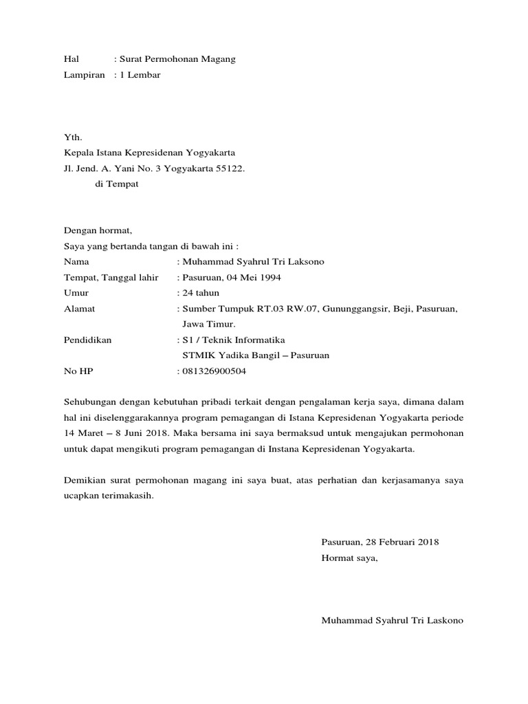 Contoh surat permohonan magang surat permohonan magang ini bersifat pribadi yang dibuat berdasarkan inisiatif diri sendiri. Setidaknya seorang mahasiswa perlu tahu tentang surat perhomonan magang surat.