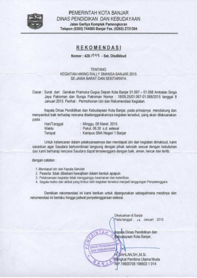 Surat Rekomendasi Ikut Lomba Kegiatan