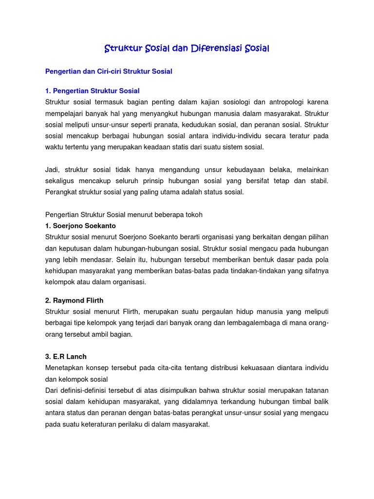 Bentuk Bentuk Diferensiasi Sosial Dan Peranan Diferensiasi Sosial