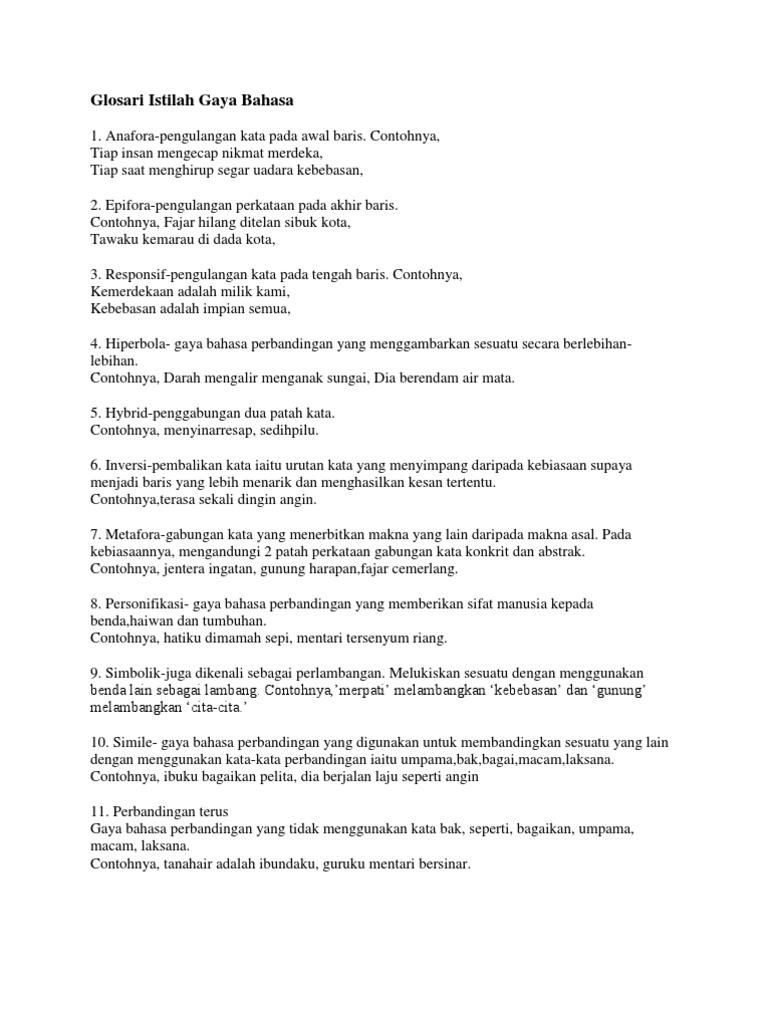 Contoh Contoh Gaya Bahasa Atau Majaz