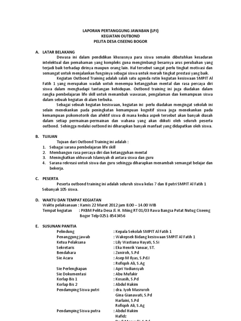 Format Penyusunan Laporan Pertanggungjawaban Lpj Kegiatan