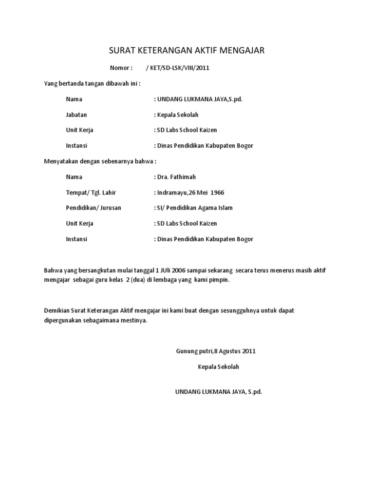 Surat Keterangan Aktif Mengajar
