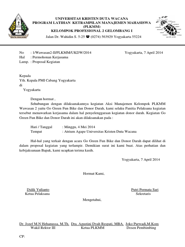 Contoh surat permohonan kegiatan. Surat permohonan izin kegiatan adalah sebuah surat yang ditulis dibuat oleh panitia kegiatan atau acara dalam rangka meminta tau memohon izin kepada pihak berwenang untuk mengadakan suatu kegiatan. Contoh surat izin kegiatan kampus surat ini tidak jauh berbeda dari surat izin kegiatan ke polisi yaitu dengan ada nya kegiatan di kampus. Contoh surat permohonan kerjasama kegiatan seminar dalam suatu kegiatan seminar maka biasanya akan ada pihak pembicara dan juga pihak narasumber.
