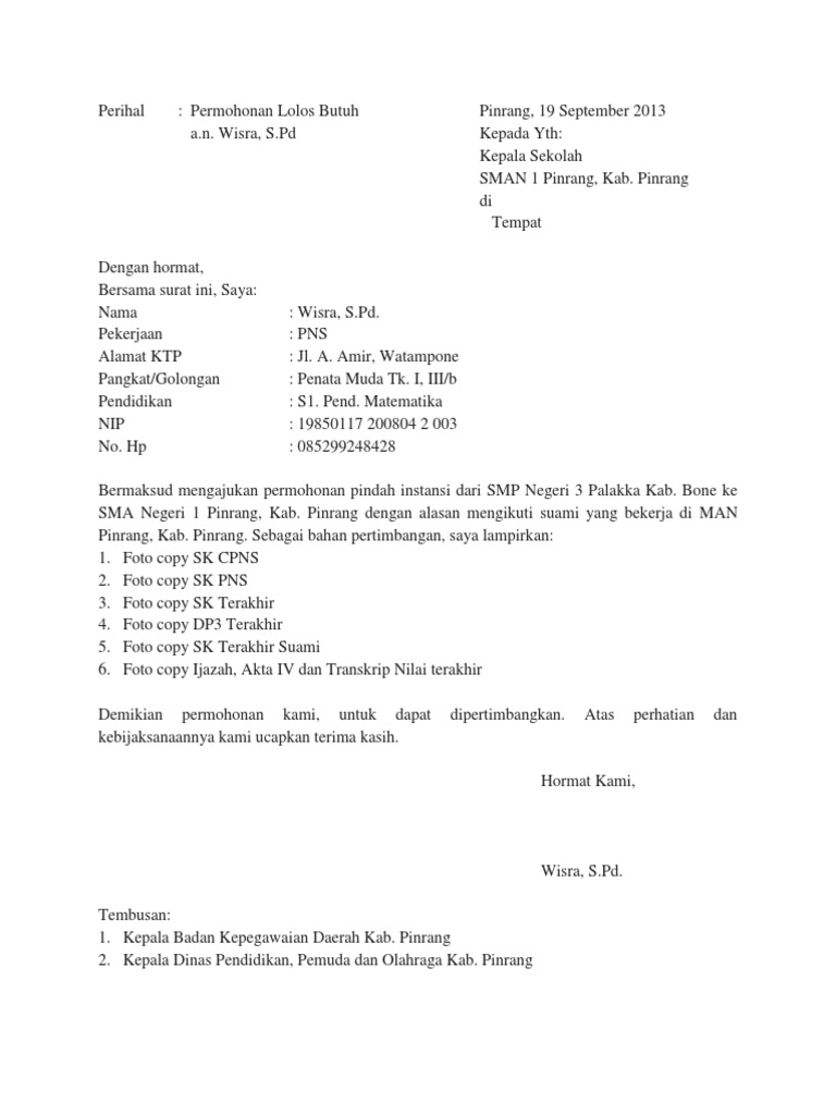 Contoh Dokumen Permohonan Mutasi Guru Kependidikan Com