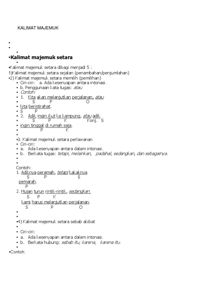 Contoh Kalimat Majemuk Setara Bertingkat Rapatan Dan Campuran