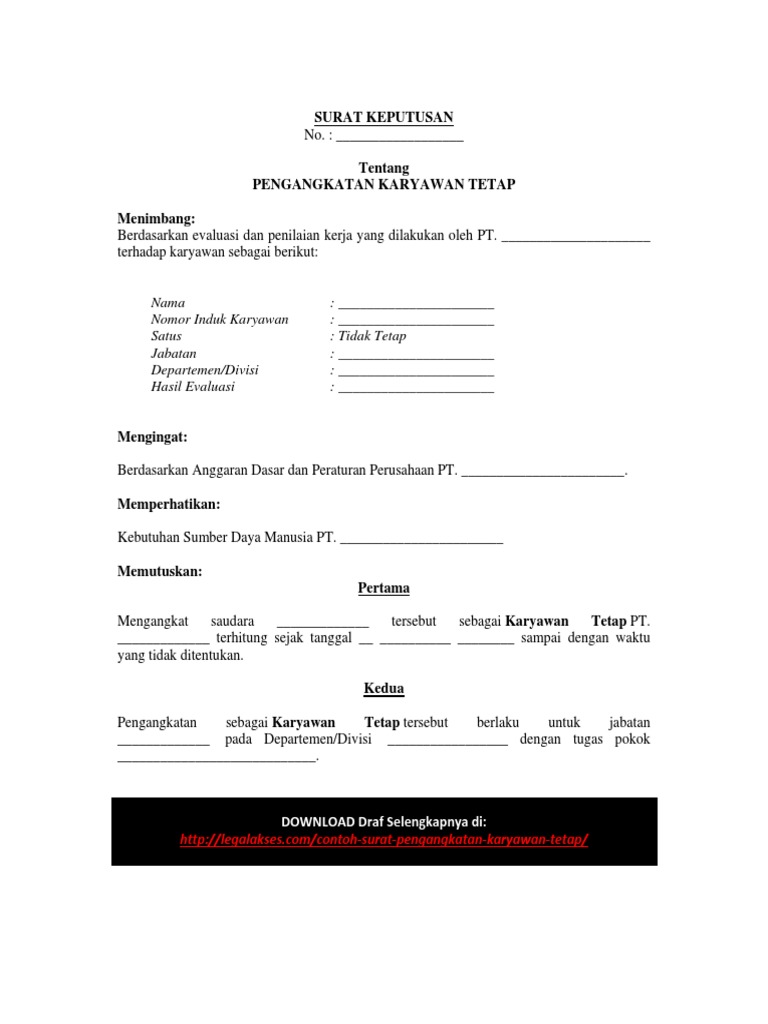 Contoh Surat Pengangkatan Karyawan Tetap Pdf