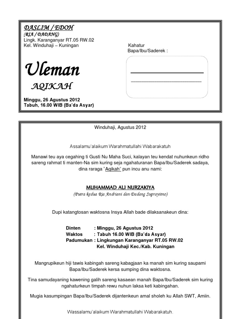 Contoh Undangan Akiqah Bahasa Sunda