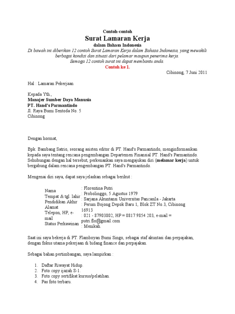 10 Contoh Surat Lamaran Kerja Dan 7 Situs Pembuat Cv Gratis Doc