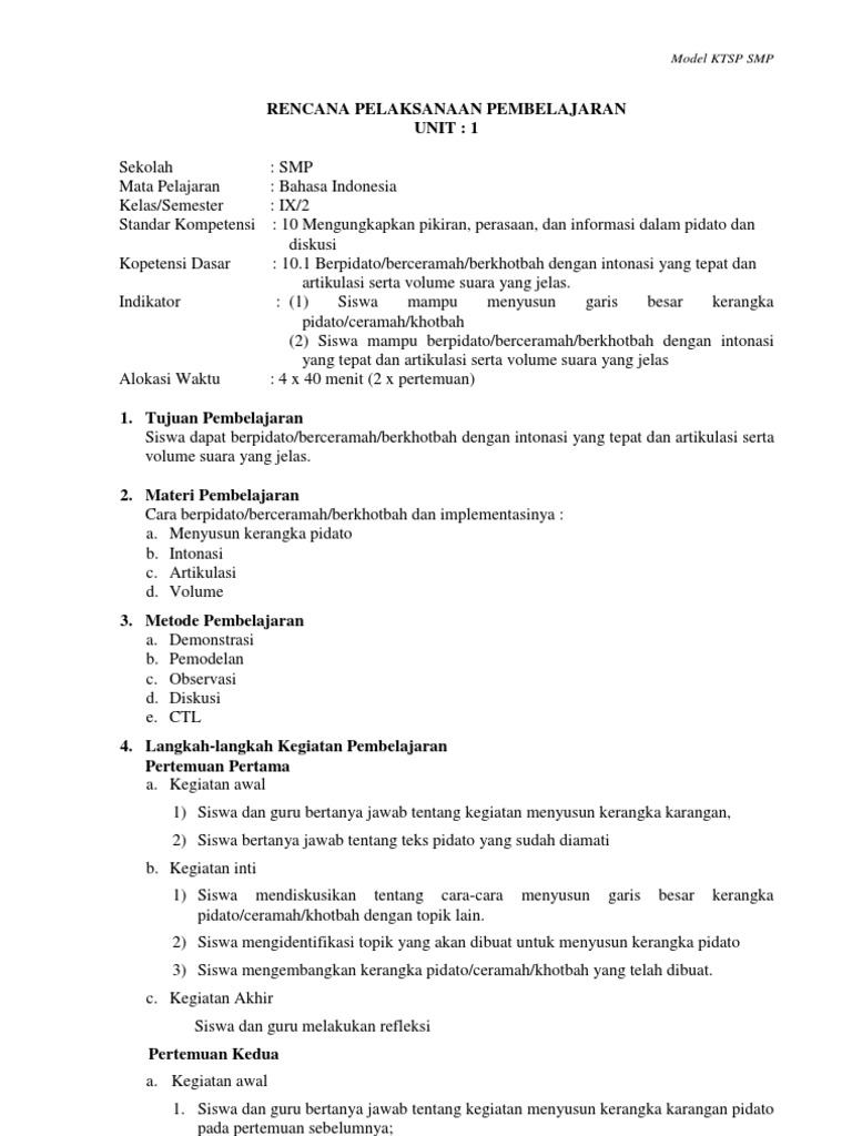 Rpp Bhs Indonesia Kelas 9 Semester 2
