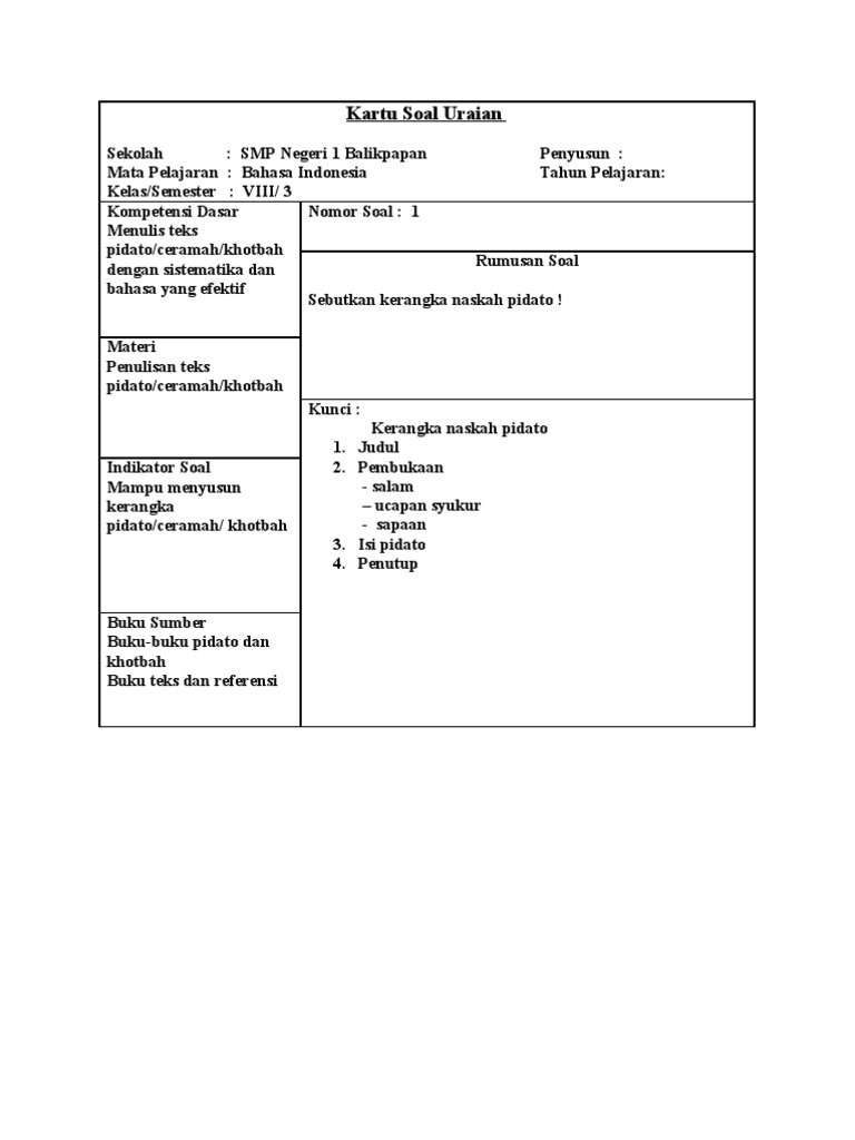 Contoh teks pidato dan kerangka.