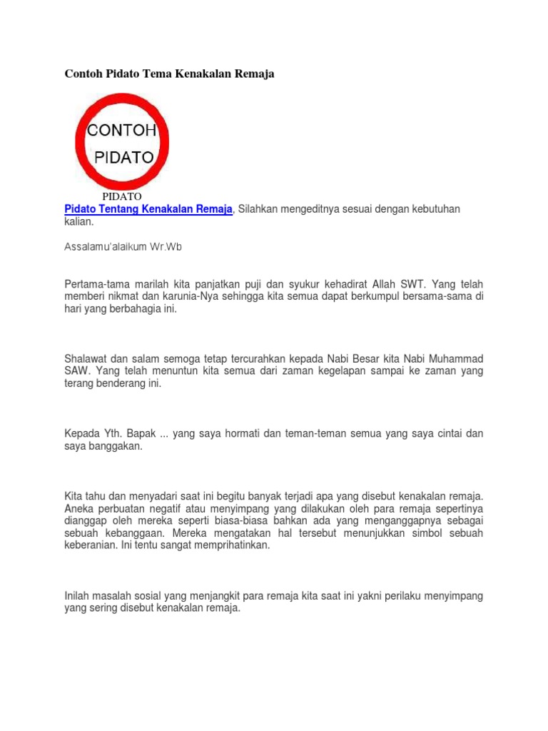 Contoh Pidato Tema Kenakalan Remaja Docx Document
