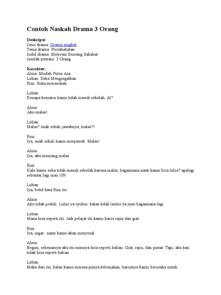 Contoh Naskah Drama 3 Orang Contoh Naskah Drama 3 Orang Deskripsi