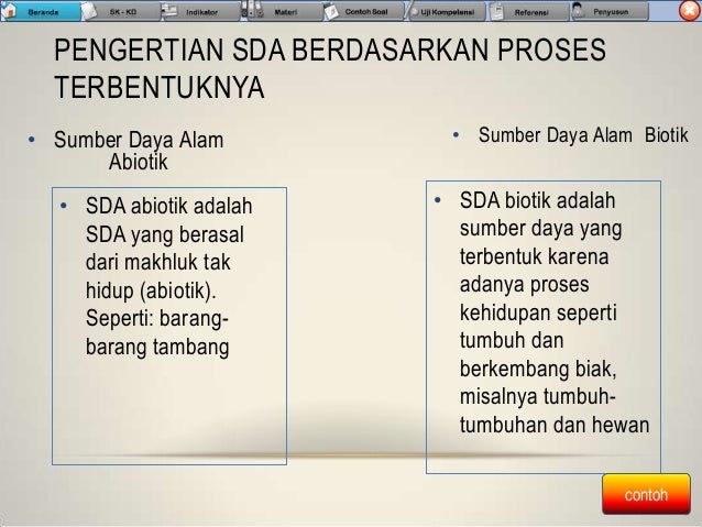 Contoh sumber daya alam abiotik. Batu tambang contoh dari sumber daya alam non hayati atau sbiotik yang pertama adalah batu tambang atau barang barang tambang. Adalah sumber daya alam yang berasal dari makhluk hidup contoh. Sumber daya alam berdasarkan pembentukannya.