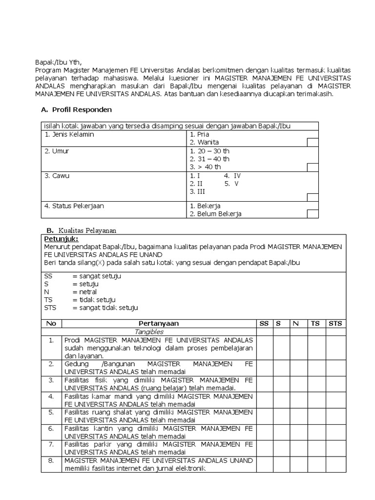 Kuesioner Kepuasan Pelanggan Jasa Document Download Godfather