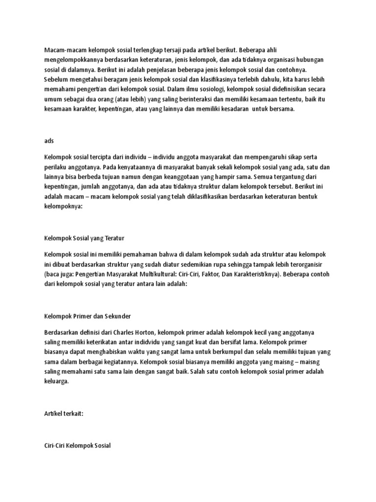 Contoh Artikel Dan Gambar Tentang Kelompok Sosial Brainly Co Id